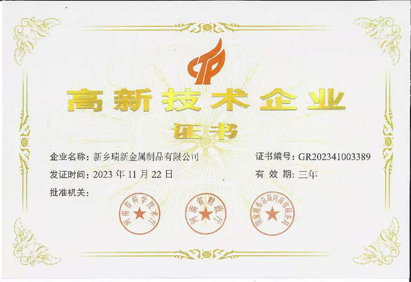 欢迎进入“新乡瑞新金属制品有限公司”官方网站!